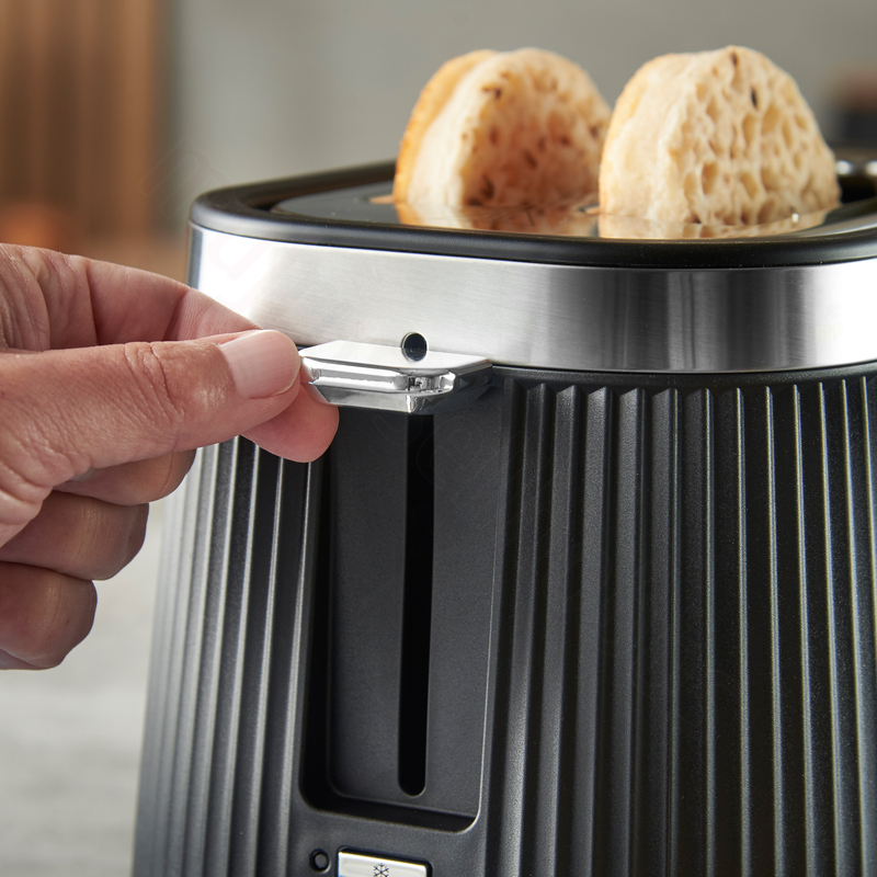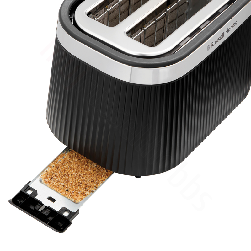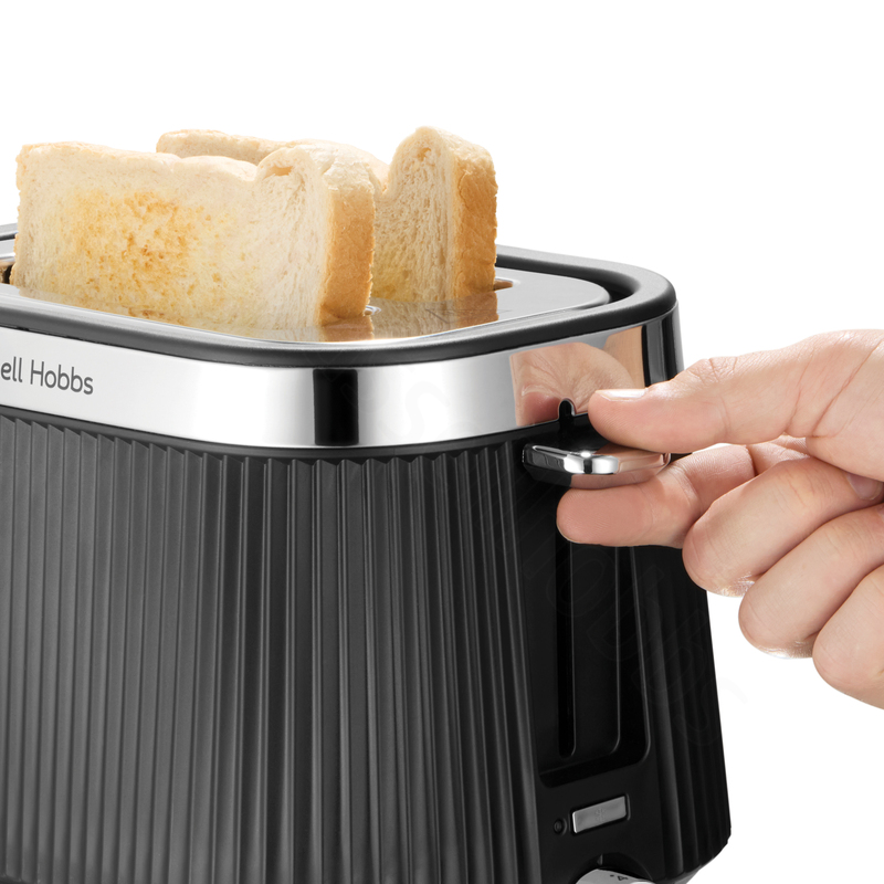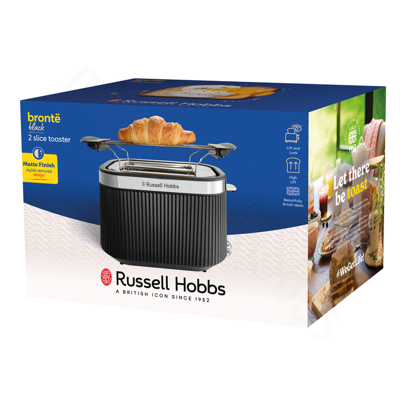 Topinkovač Brontë Matte Black Russell Hobbs 26760-56 v černém provedení nadchne milovníky luxusního stylu. Dokonalá kombinace designu a výkonu ozdobí každou moderní kuchyň. Díky širším přihrádkám jednoduše opeče silnější plátky chleba podle vašich představ.