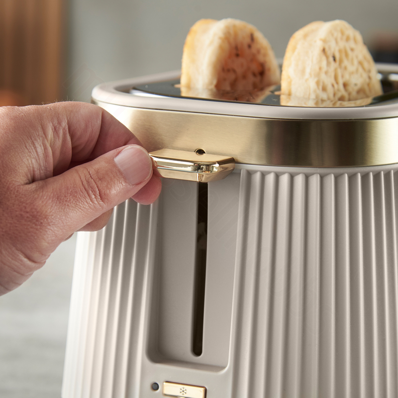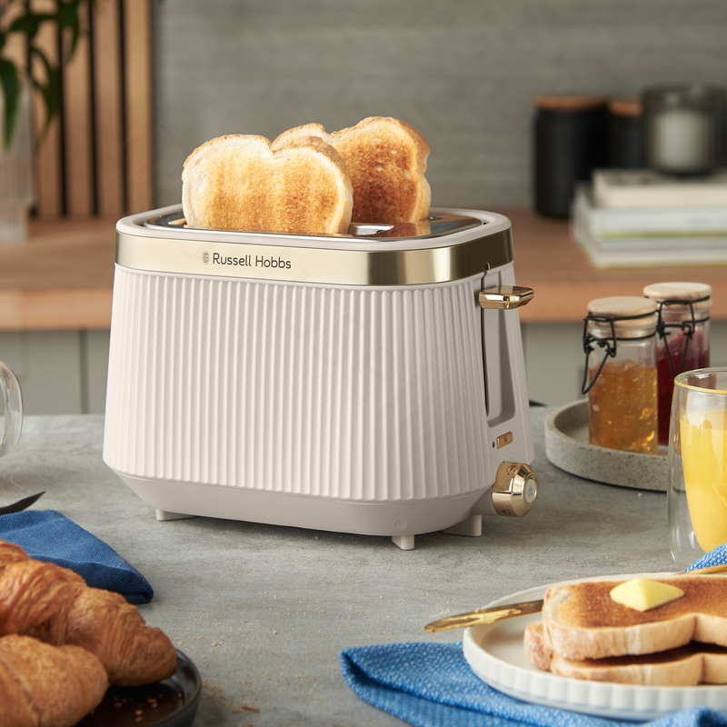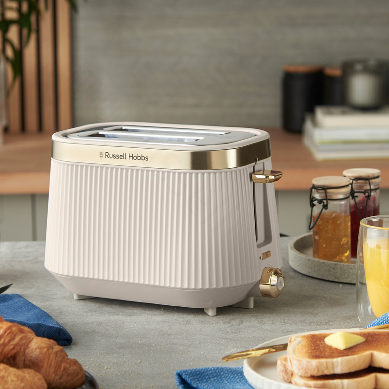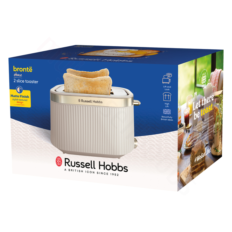 Topinkovač Brontë Stone Russell Hobbs 26761-56 v krémovém provedení nadchne milovníky luxusního stylu. Dokonalá kombinace designu a výkonu ozdobí každou moderní kuchyň. Díky širším přihrádkám jednoduše opeče silnější plátky chleba podle vašich představ.