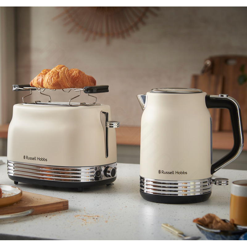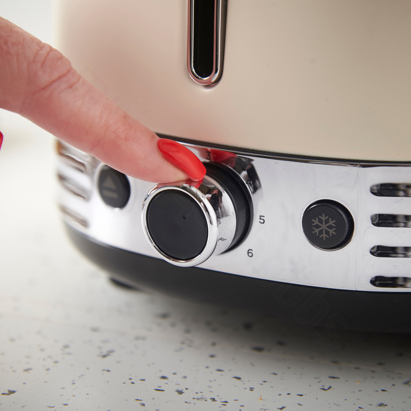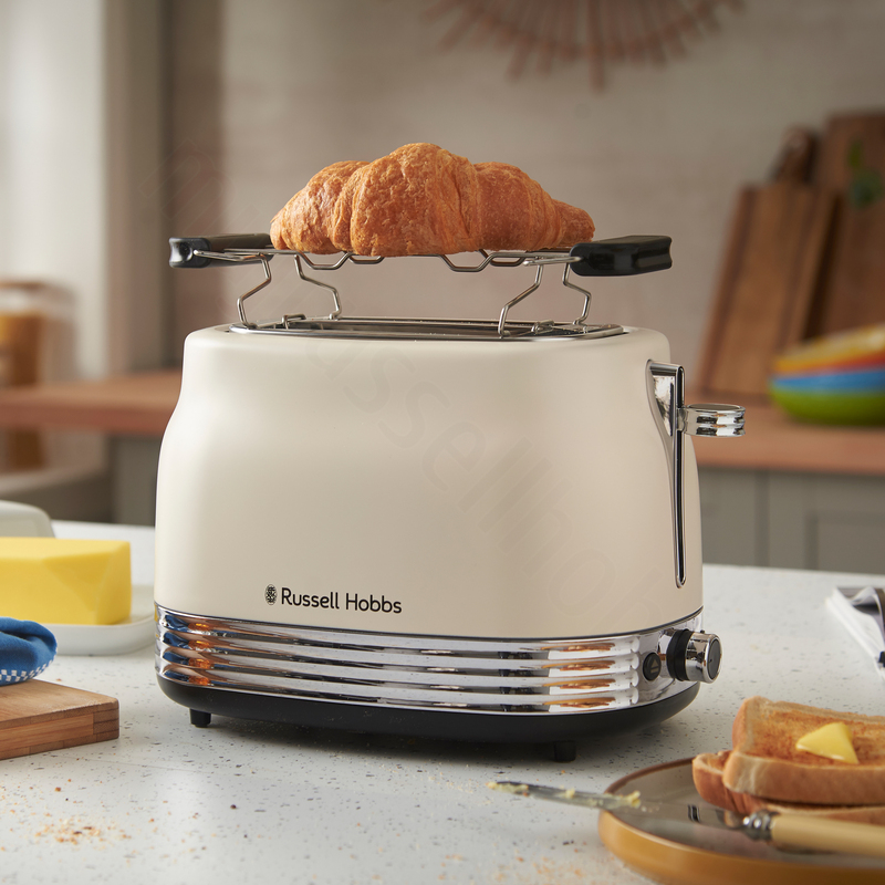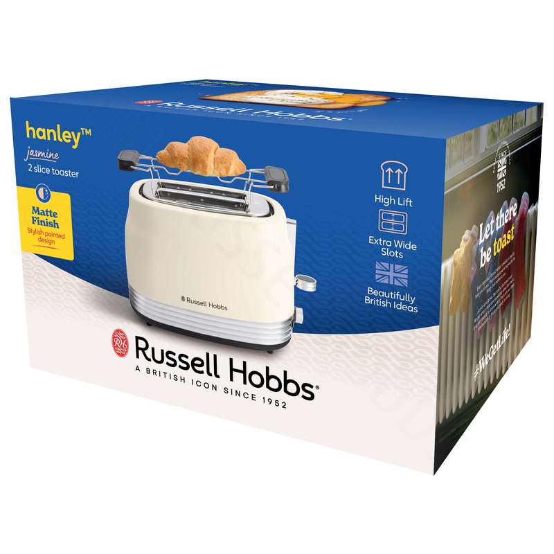 Topinkovač Hanley Jasmine Russell Hobbs 28650-56 v krémovém provedení nadchne milovníky tradičního stylu. Dokonalá kombinace designu a výkonu ozdobí každou kuchyň. Díky širším přihrádkám jednoduše opeče silnější plátky chleba podle vašich představ.