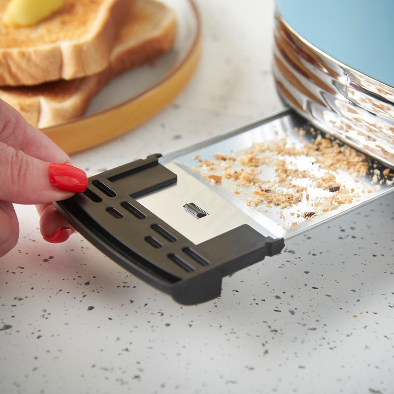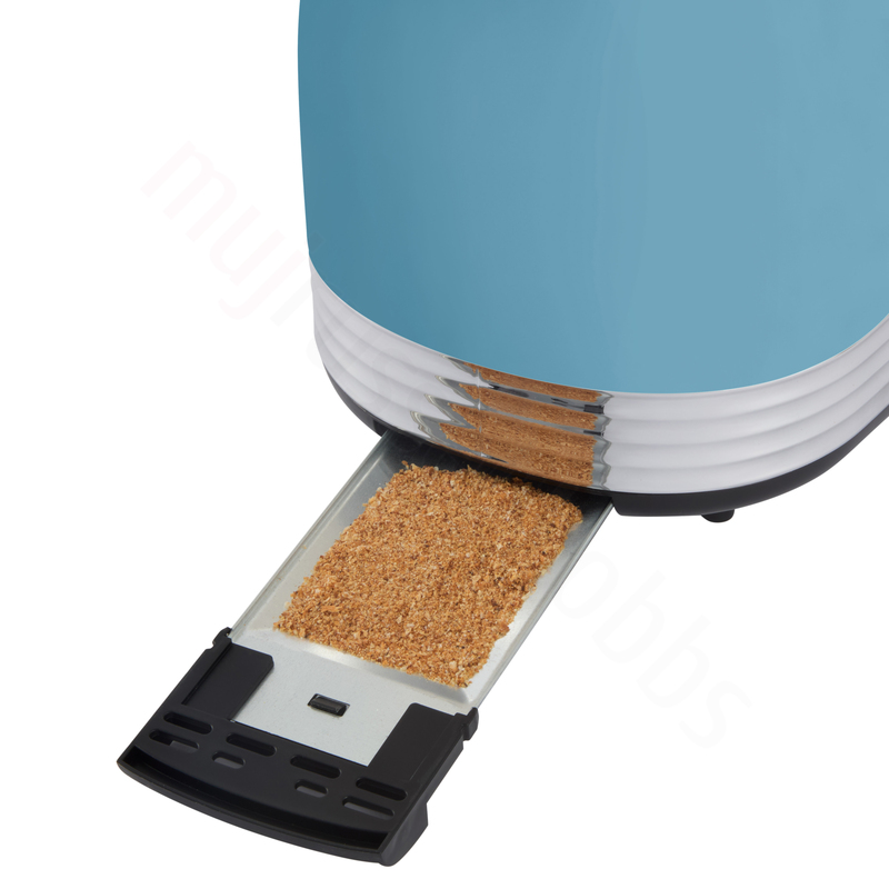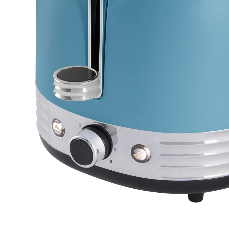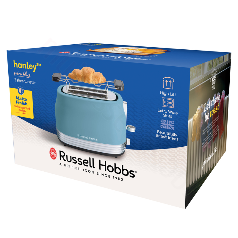 Topinkovač Hanley Retro Blue Russell Hobbs 28651-56 v modrém provedení nadchne milovníky tradičního stylu. Dokonalá kombinace designu a výkonu ozdobí každou kuchyň. Díky širším přihrádkám jednoduše opeče silnější plátky chleba podle vašich představ.