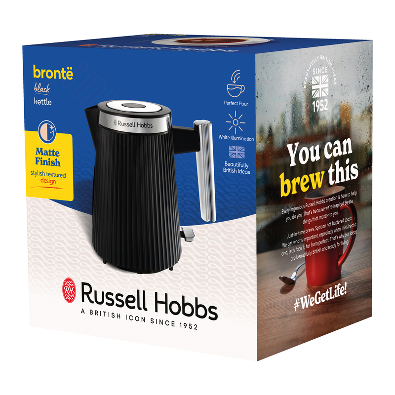 Rychlovarná konvice Brontë Matte Black Russell Hobbs 26750-70 v matném černém provedení nadchne milovníky luxusního stylu. Dokonalá kombinace designu a výkonu ozdobí každou moderní kuchyň. Je jednoduchá, stylová a zároveň nabídne i praktické funkce.